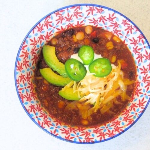 * Wyższa jakość mięsa podnosi poziom smakowy chili. Osobiście uwielbiamy mięso chude z lokalnych farm, zamiast sklepu. Ale jakiekolwiek mięso zadziała.